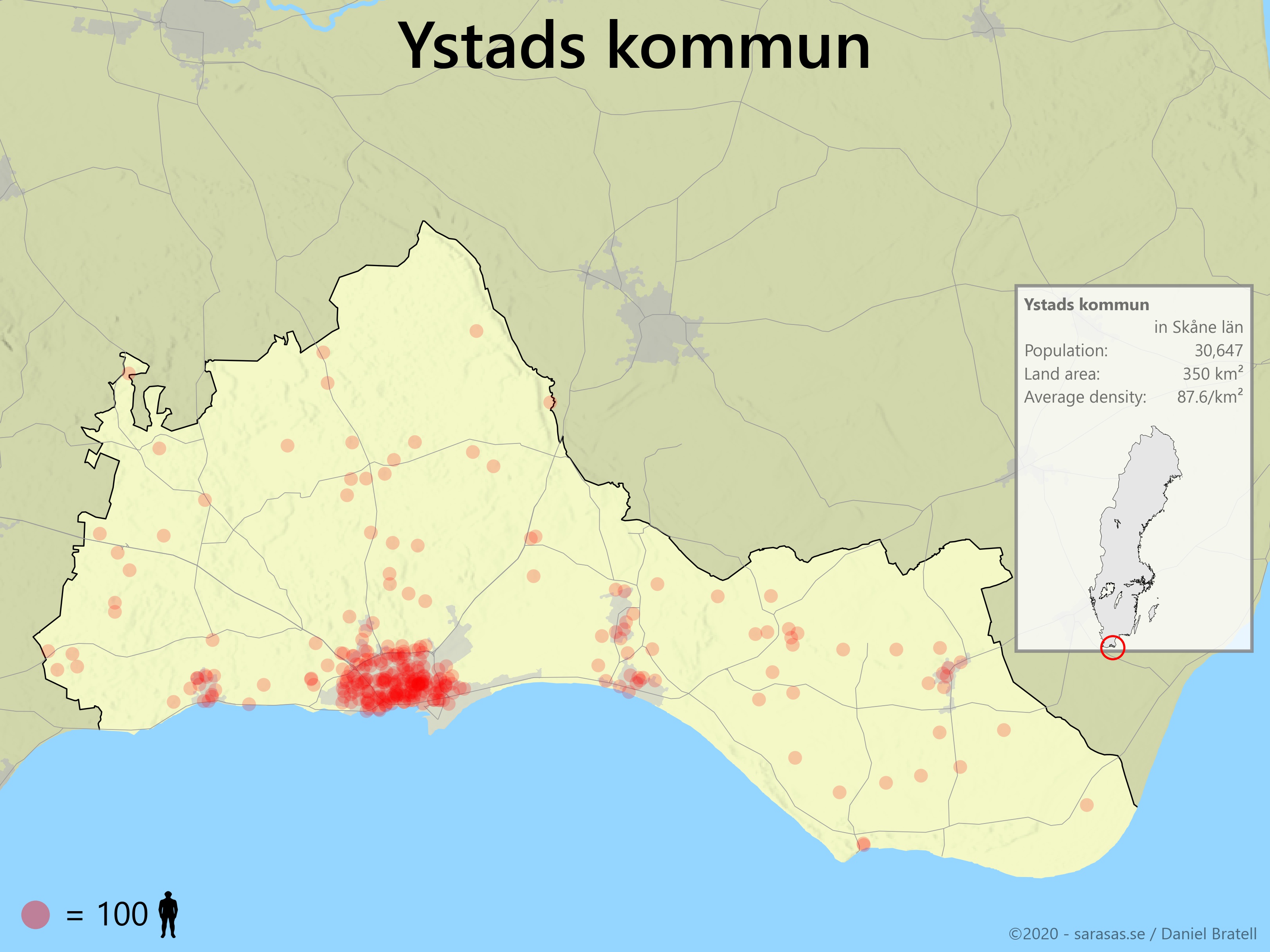 Population density in Ystads kommun